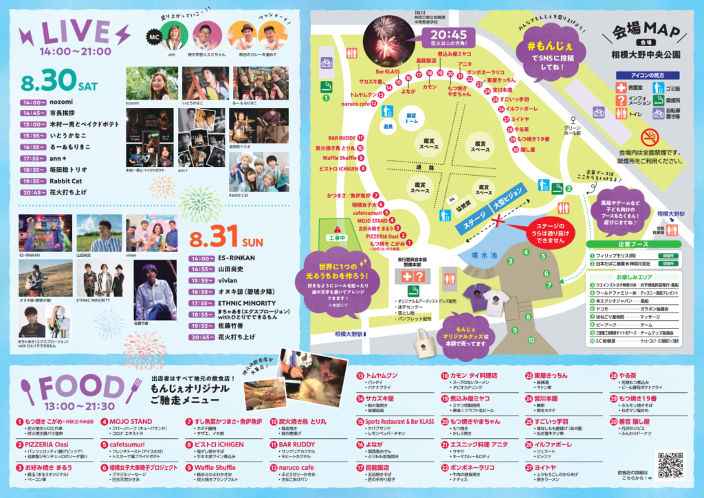 | 日時 | 2024年8月30日(土)31日(日) フード 13:00-21:30 ライブ 14:00-21:00 |
